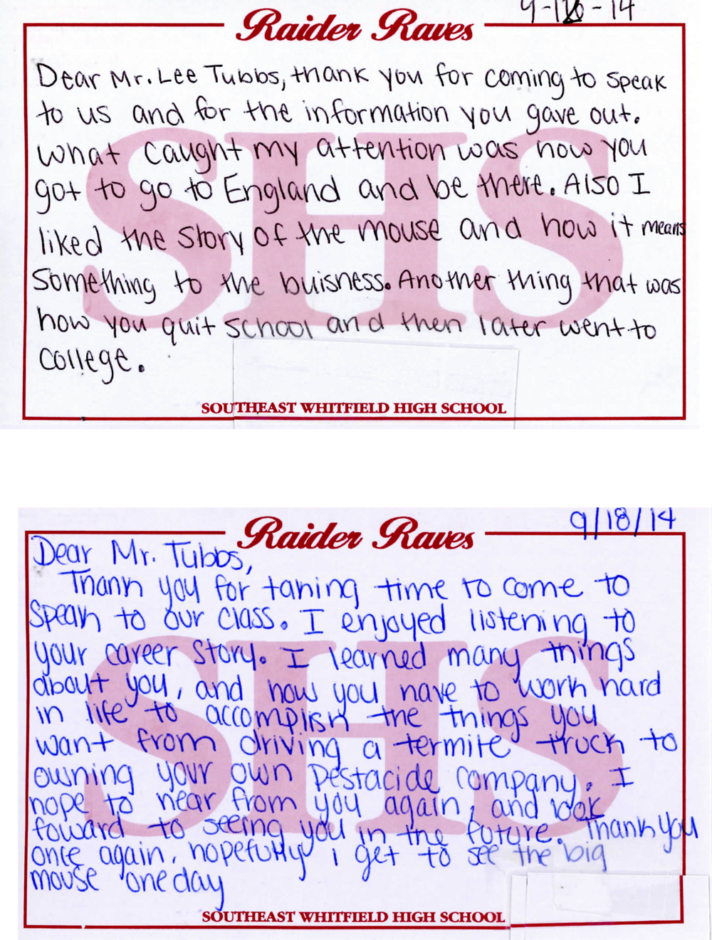 Lee is a frequent speaker at area and regional organizations including entrepreneurship and strategic management classes at Dalton State College (Dalton, GA) Entrepreneurship Resource Rally, Phi Beta Lambda business events, and at the University of Tennessee at Chattanooga Entrepreneurship Forums. He and his employees offer a program on pests and pest control for area elementary schools. Lee also speaks to local high school groups. Click here to see comments from students at Southeast Whitfield High School in Dalton, GA. He has authored a monthly column on pest control for the Chattanooga Times Free Press and is a contributor to pest control industry publications.